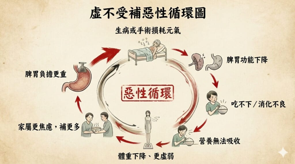 虛不受補」的惡性循環圖解